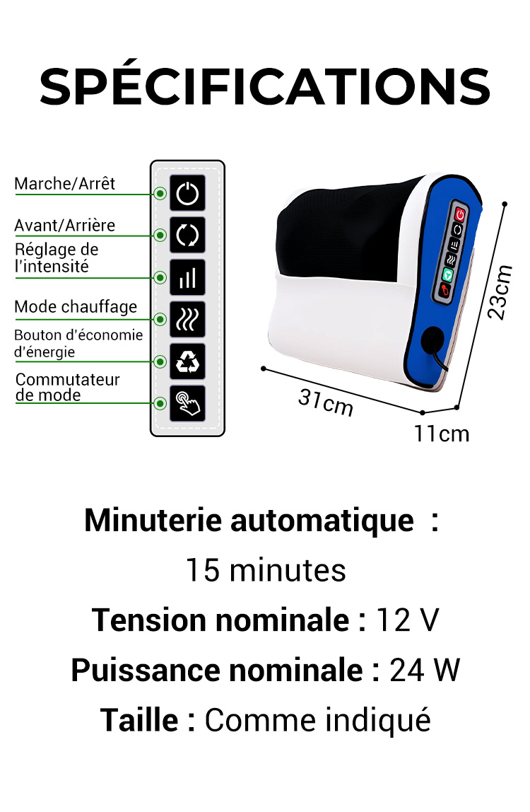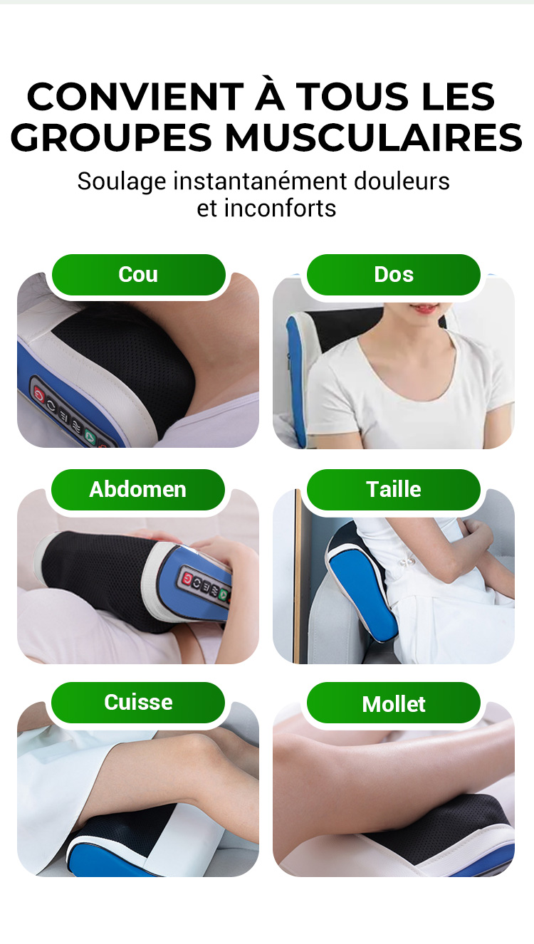 ✨✨Votre propre masseur☺️Coussin de massage multifonctionnel à pétrissage profond avec chaleur【Livraison gratuite】