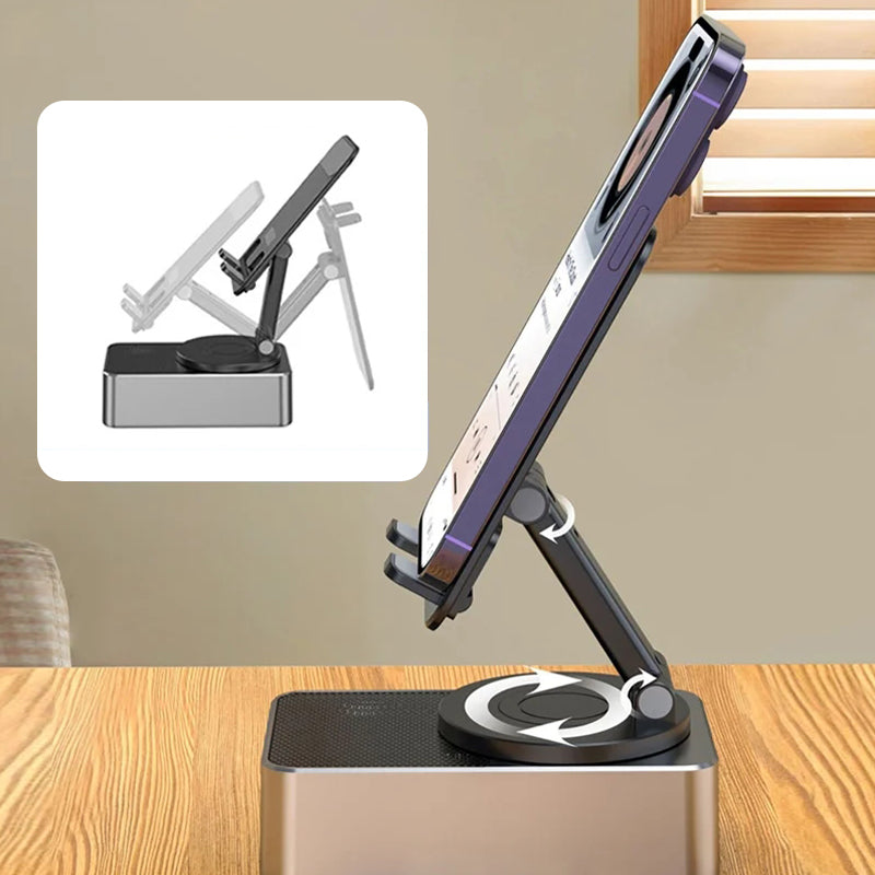 Le support de téléphone Bluetooth Audio Power est livré avec un support réglable qui facilite la fixation de votre appareil à votre source d'alimentation mobile. Quel que soit le type de téléphone portable que vous possédez, il s'adaptera à notre support. Le support peut être tourné et plié, avec une variété d'angles de vue, afin que vous puissiez regarder des films sans vous fatiguer les épaules et le cou. La conception à double pivot donne à votre téléphone un support solide et peut être ajustée à n'importe quelle hauteur.