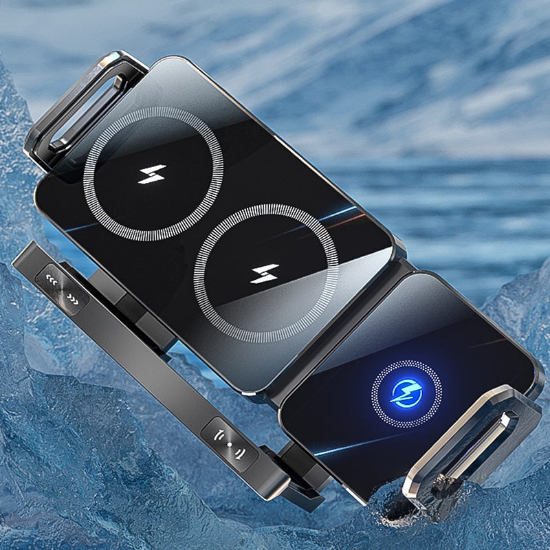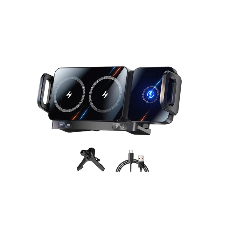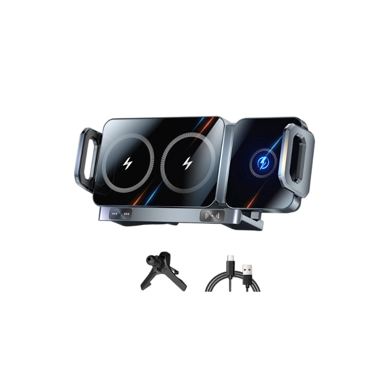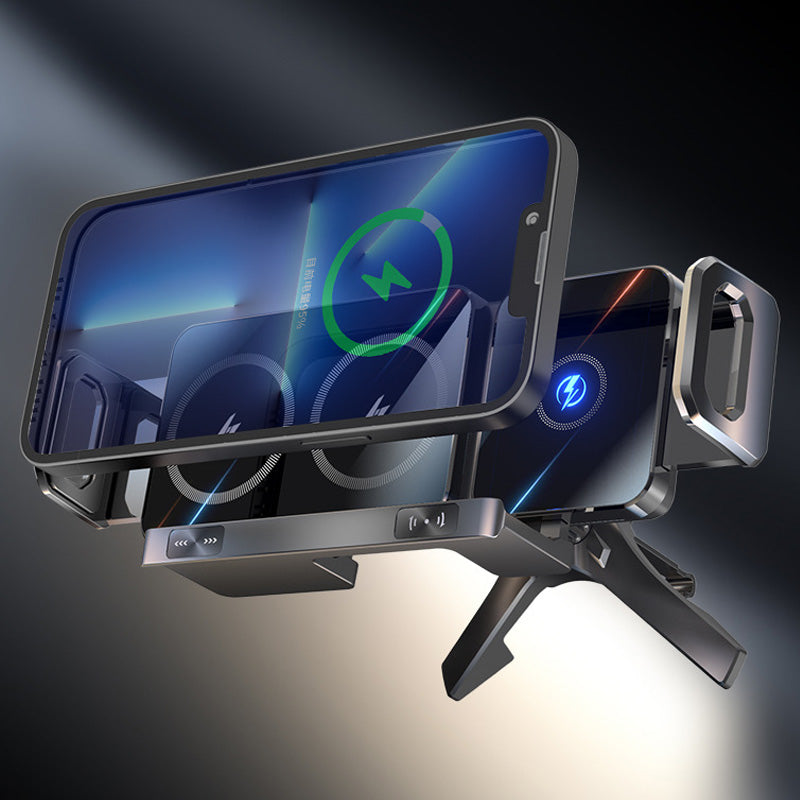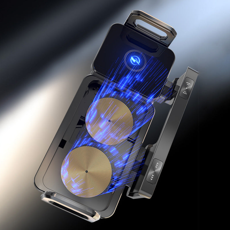 📢Dernières 3 heures : Grande vente⏰Support de téléphone de voiture sans fil à double bobine avec fonction de charge sans fil