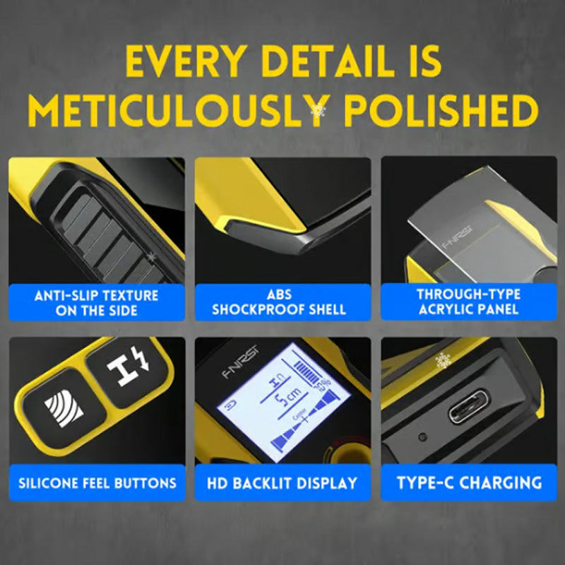 DÉTECTION DE PROFONDEUR PRÉCISE: Détecte les montants en bois et en métal jusqu'à 1,5", les fils de cuivre jusqu'à 1,6", les câbles CA jusqu'à 2", et les métaux comme le cuivre (3,9") et le fer (4,7"), vous assurant de trouver exactement ce dont vous avez besoin.