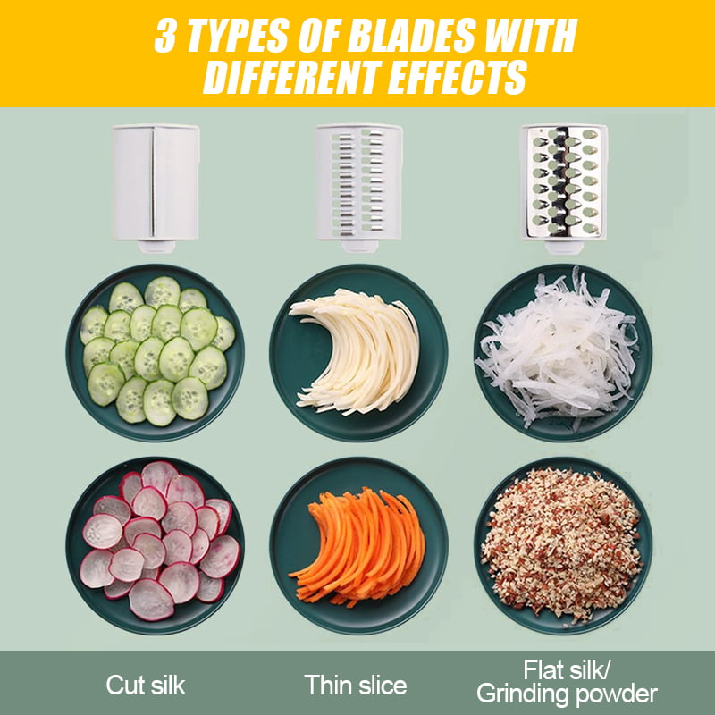 - Mains et accessoires zéro contact, couper les légumes et les fruits est facile, pas besoin d'être habile, rapide et pratique, les tranches sont uniformes et minces, les racines coupées sont similaires, les particules d'extrémité hachées sont uniformes.